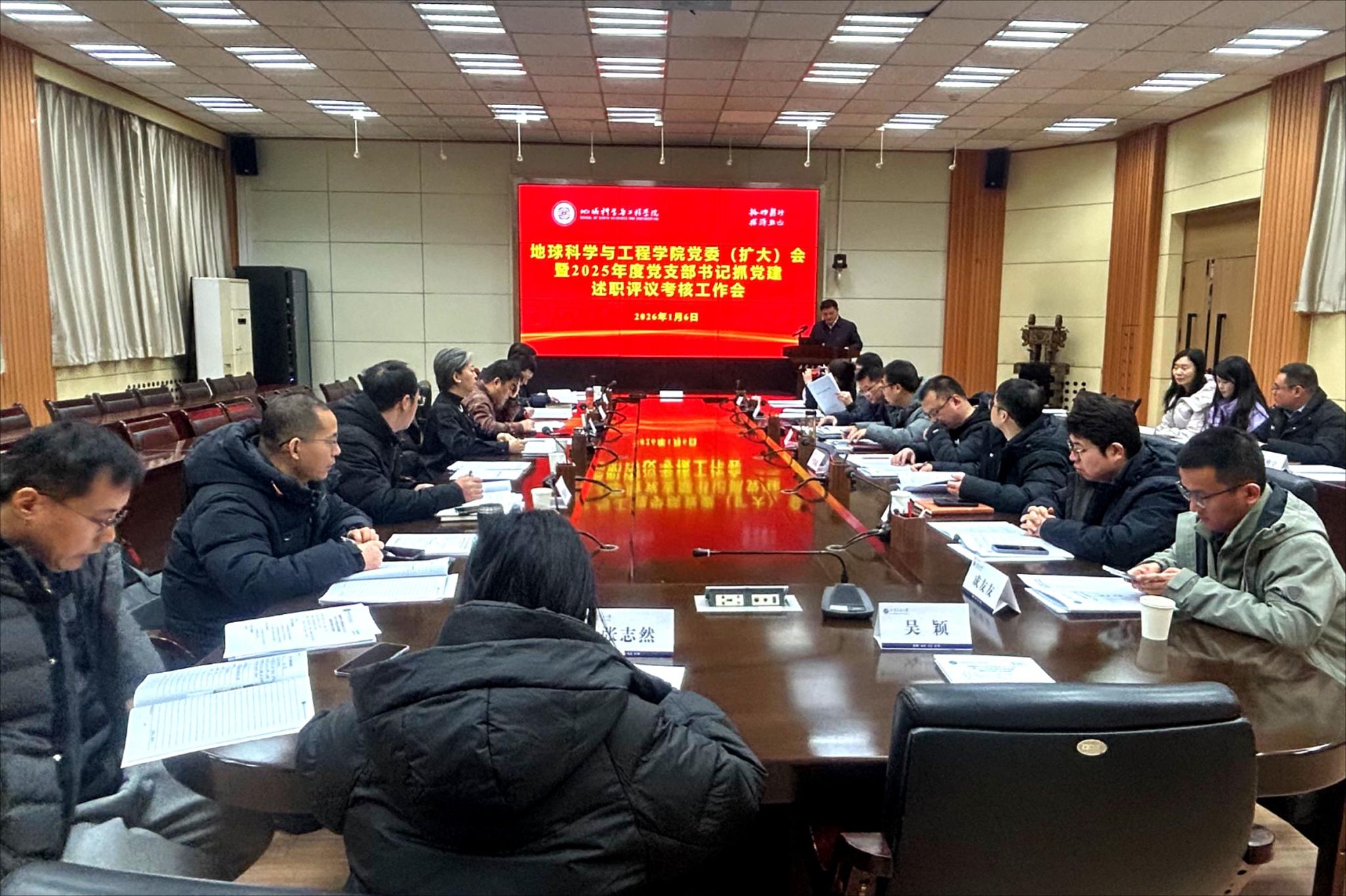 1月6日上午,地球科学与工程学院在雁塔校区第二会议室召开2025年度党支部书记抓党建述职评议考核工作会议,并随后召开2026年第1次党委理论学习中心组(扩大)学习会。学院党委委员、领导班子成员,院长助理,各党支部书记、系主任(副主任)、组织员以及省政协委员和德州扑克