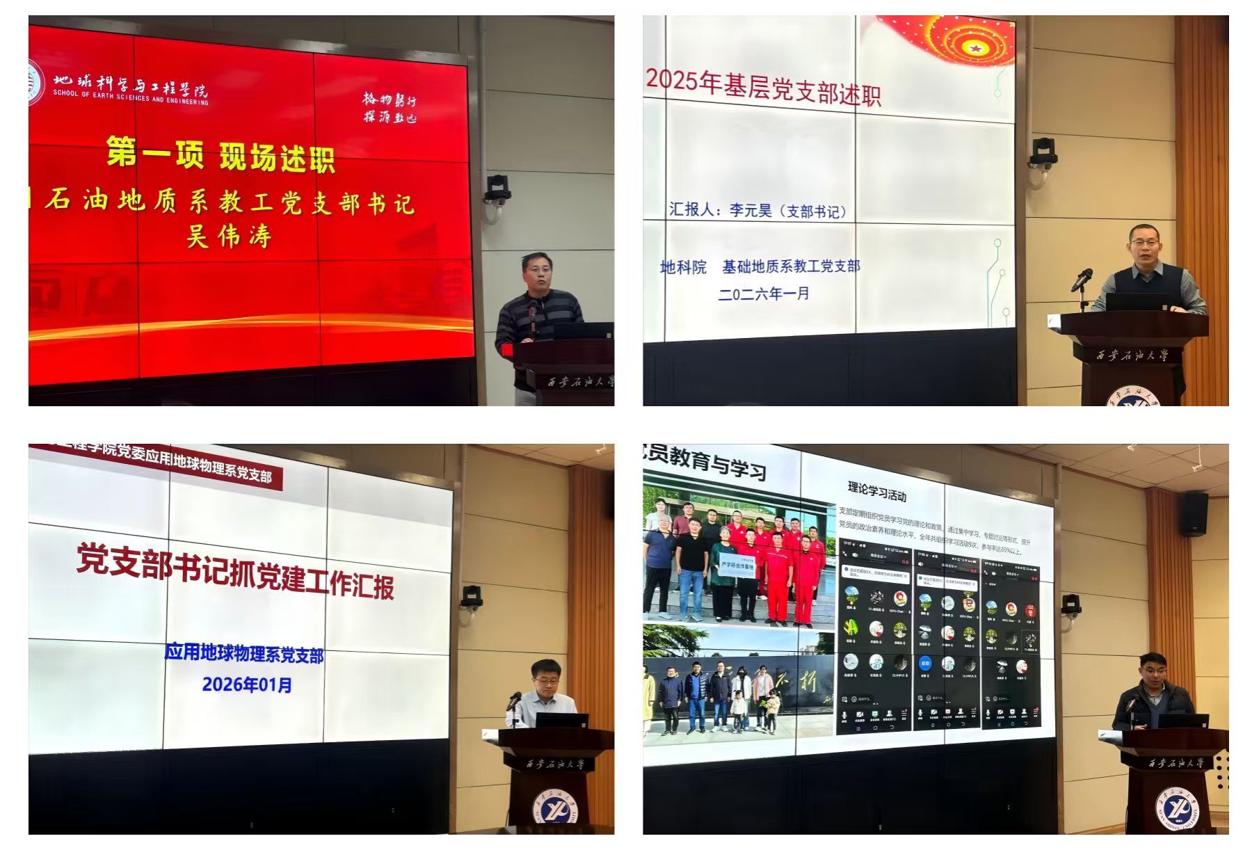 党委推进全面从严治党向基层延伸、压实党建工作责任的重要制度安排。过去一年,学院各党支部围绕中心、服务大局,取得了扎实成效,特别是基础地质系教工党支部在党建“双创”工作中实现突破,石油地质系教工党支部获评校级样板党支部,应用地球物理系教工党支部组织生活模式获推广,地质工程系党支部书记微党课入选校级录制推广,这些成果充分展现了基层党组织的战斗堡垒作用。