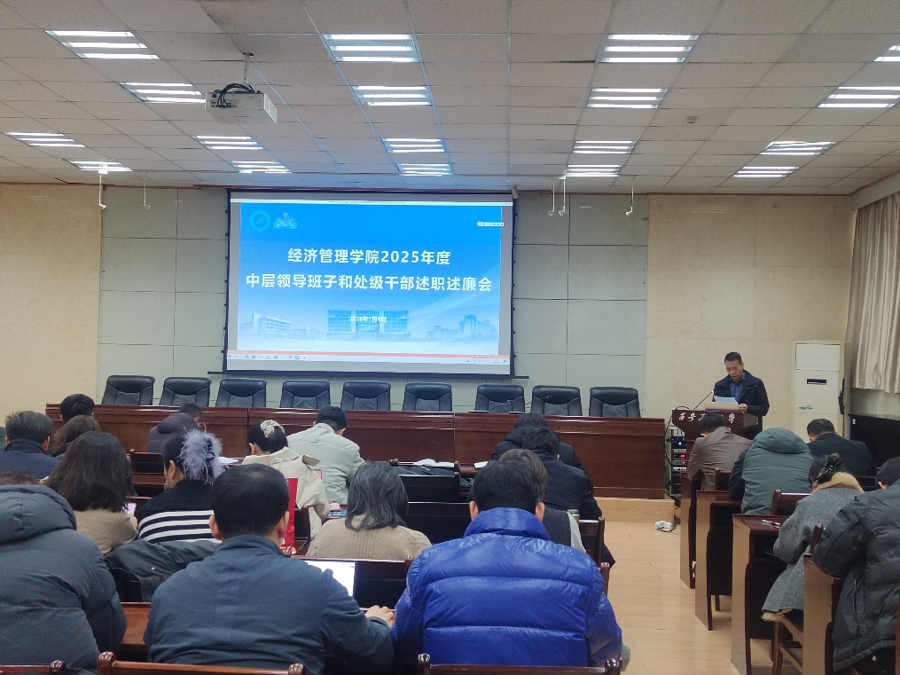 1月6日上午,经济管理学院在雁塔校区第三会议室召开2025年度中层领导班子和处级干部述职述廉大会。会议全面复盘学院年度工作成效,系统部署2026年高质量发展任务,全体教职工参会,学院党委书记张凌寒主持会议。
