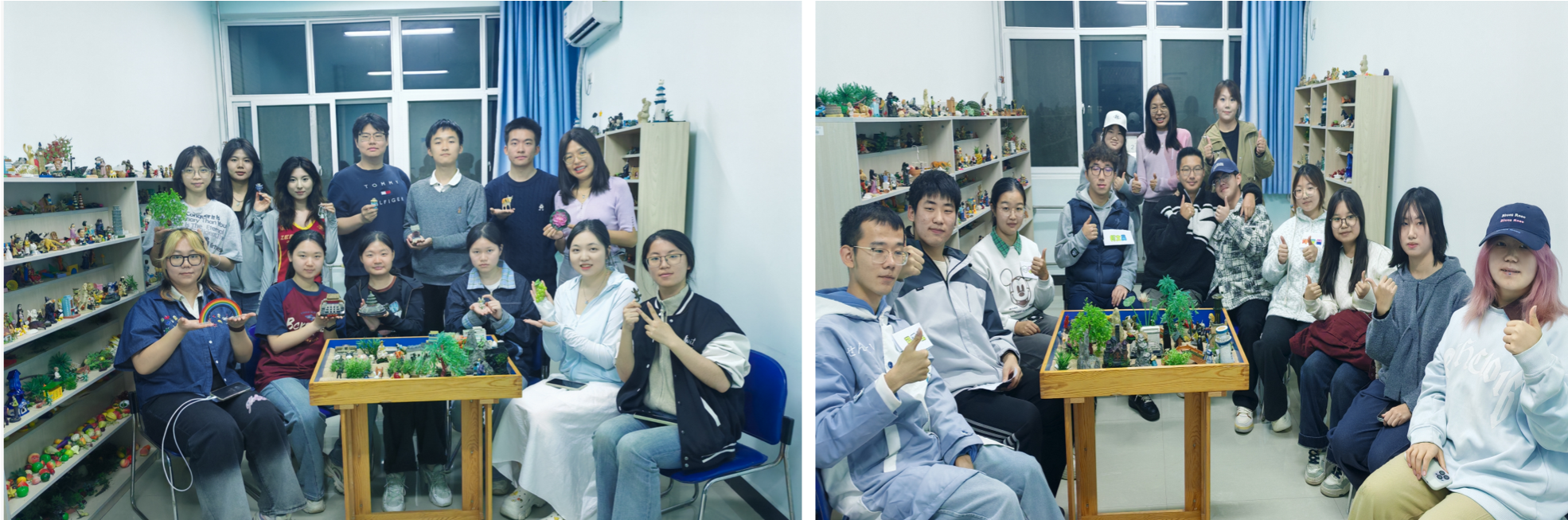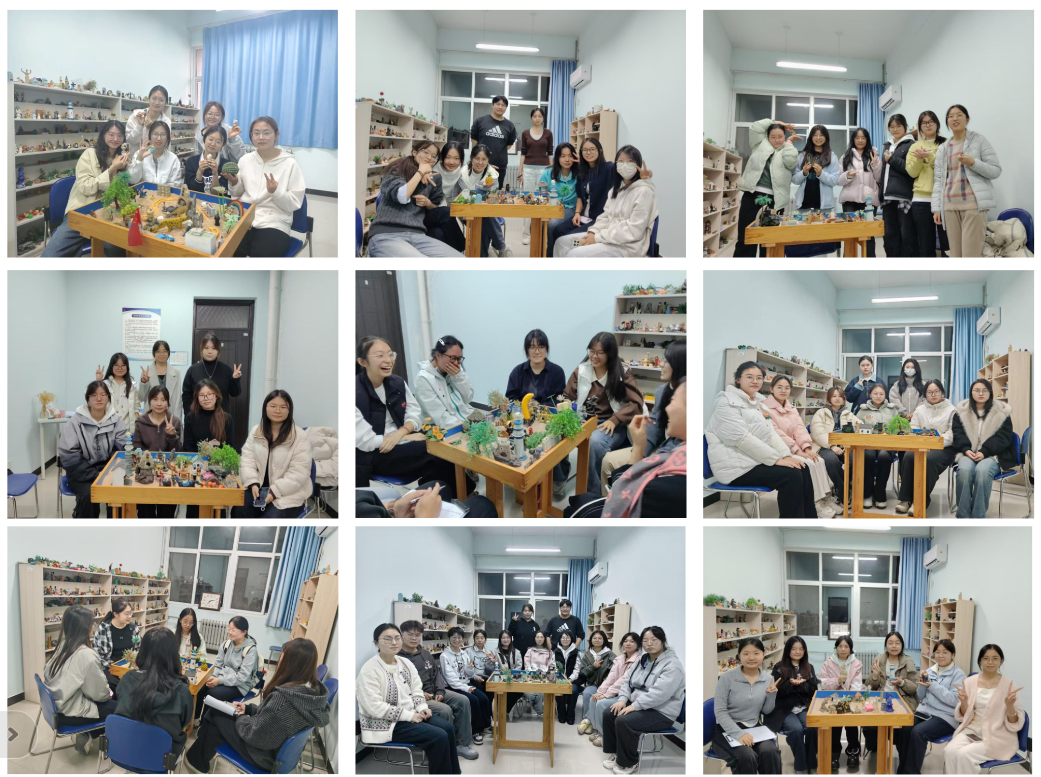 学以致用是朋辈服务的关键。在魏老师的指导下,完成培训的心理委员们作为“引航员”,将团体沙盘这一生动、体验式的活动形式带入同学们的日常。本年度重点开展了两类活动:一是以宿舍为单位的团体沙盘活动,引导室友共同构筑沙盘场景,在互动中增进理解、包容与联结,让宿舍成为心理关怀的第一阵地;二是面向个人成长的开放式主题沙盘,帮助参与者在安全、支持的氛围中表达自我、探索情绪,在朋辈陪伴中获得启发与成长。