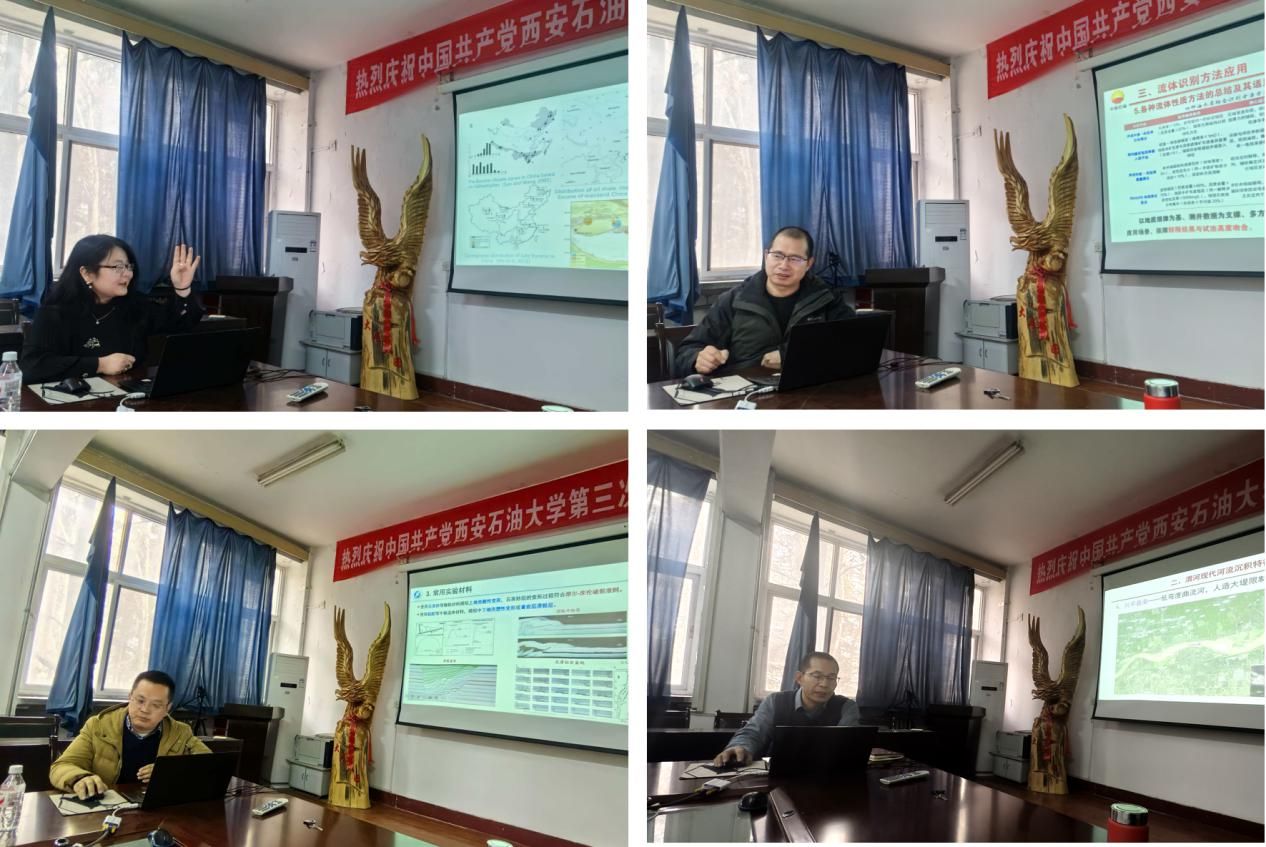 下半场,贾慧、魏钦廉、闫兵、李元昊等依次分享了“河南灵宝盆地早始新世植物群落与古环境分析”“安塞油田长6油层组储层参数下限确定与流体识别方法应用”“构造物理模拟在含油气构造研究中的应用”“关中地区渭河现代沉积特征”等研究成果。