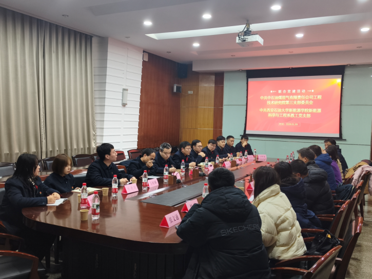 1月29日,中石油煤层气有限责任公司工程技术研究院第三党支部走进校园,与新能源科学与工程系教工党支部联合开展了主题为“党建引领,业务互促”的支部共建活动。此次活动旨在通过校企深度联动,探索党建与科研教学深度融合的新路径。煤层气公司工程技术研究院院长郝鹏程、一级工程师孙斌,新能源德州扑克
