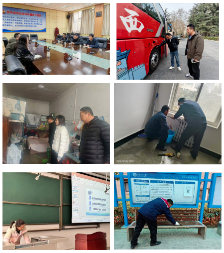 物业管理服务中心统筹环境整治、设施安全与通勤保障,在三校区开展全域清洁与病媒消杀,排查楼宇及员工宿舍违规电器隐患;完成教室、会议室多媒体设备调试;联合西旅集团开展班车安全专项检查、规范服务标准,全方位筑牢保障防线。