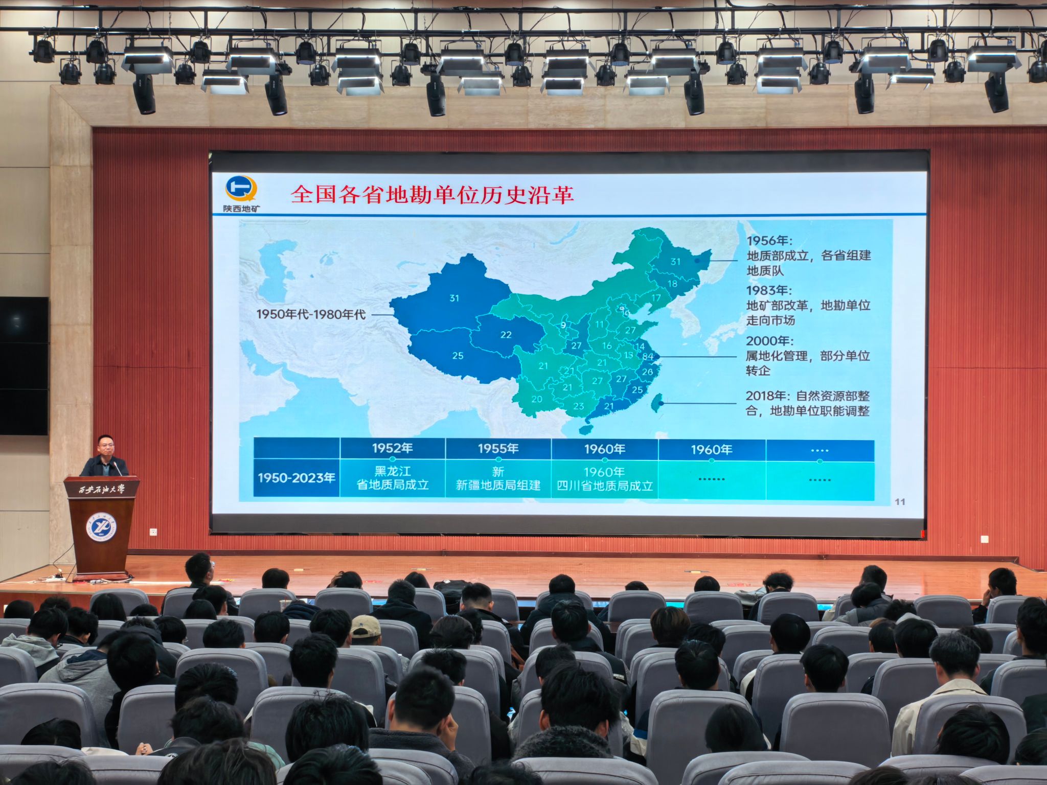 毕业生在单位成长的典型案例,并就陕西地矿物化探队有限公司2026届招聘情况做了宣讲。他鼓励同学们要以优秀的地质前辈为榜样,扎实学好专业知识,注重提升综合素质,努力成长为能够担当时代重任的高素质地矿人才,为服务国家战略需求和行业发展贡献青春力量。