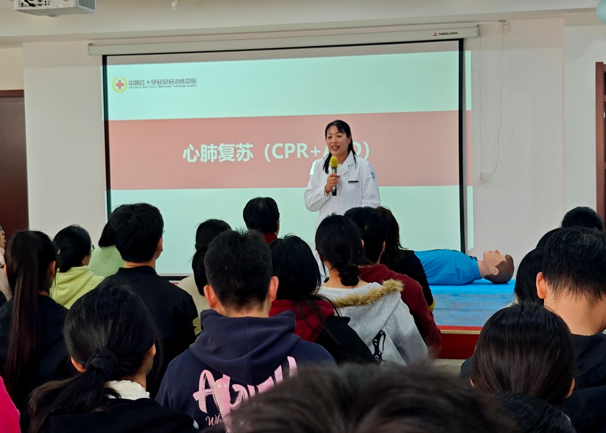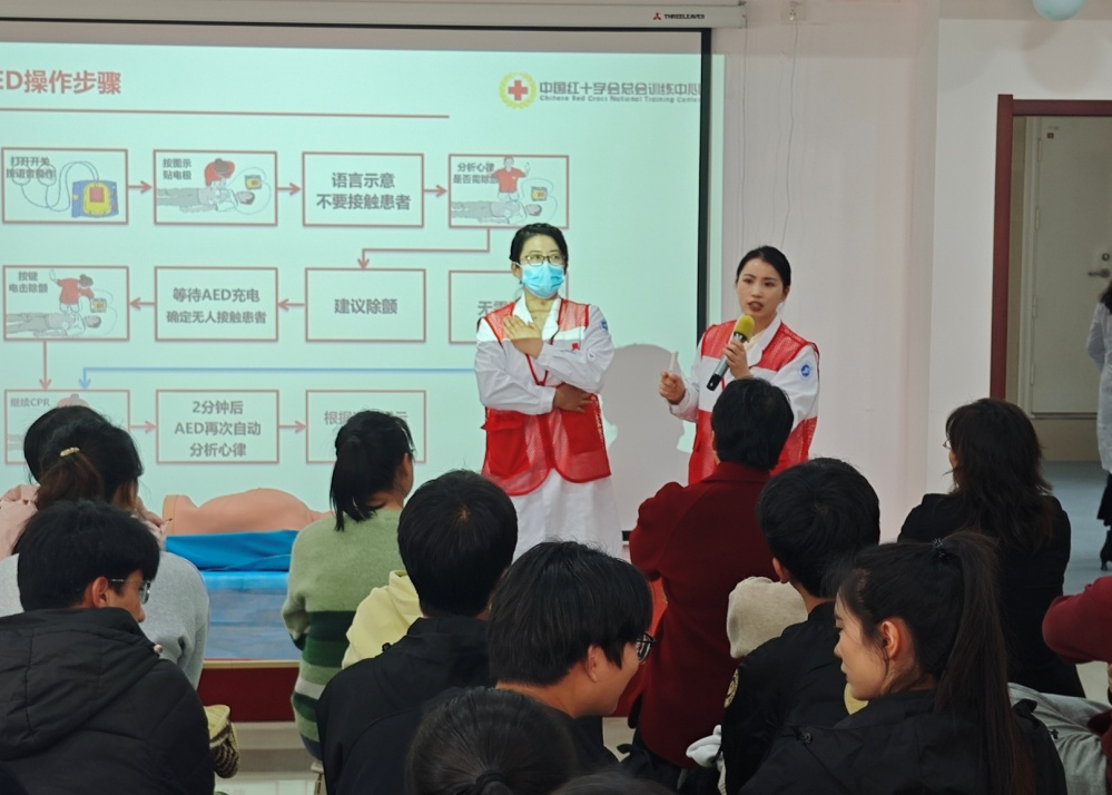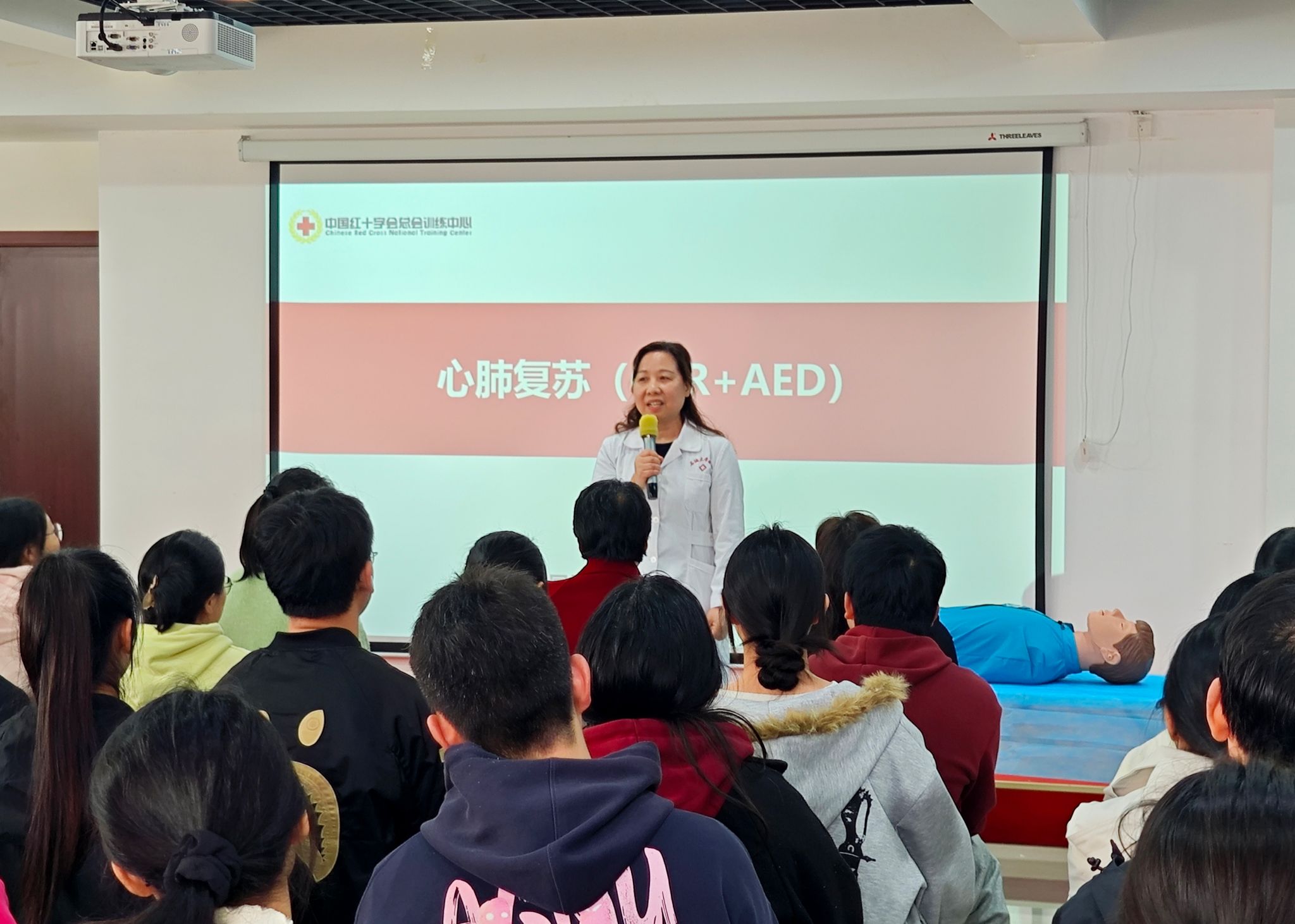 已实现多校区AED设备全域覆盖布设,本次培训是完善校园急救体系、织密校园安全防护网的关键一环。她希望全体学员珍惜学习机会,切实将所学知识转化为守护生命的实战能力,主动担当校园安全“第一响应人”。