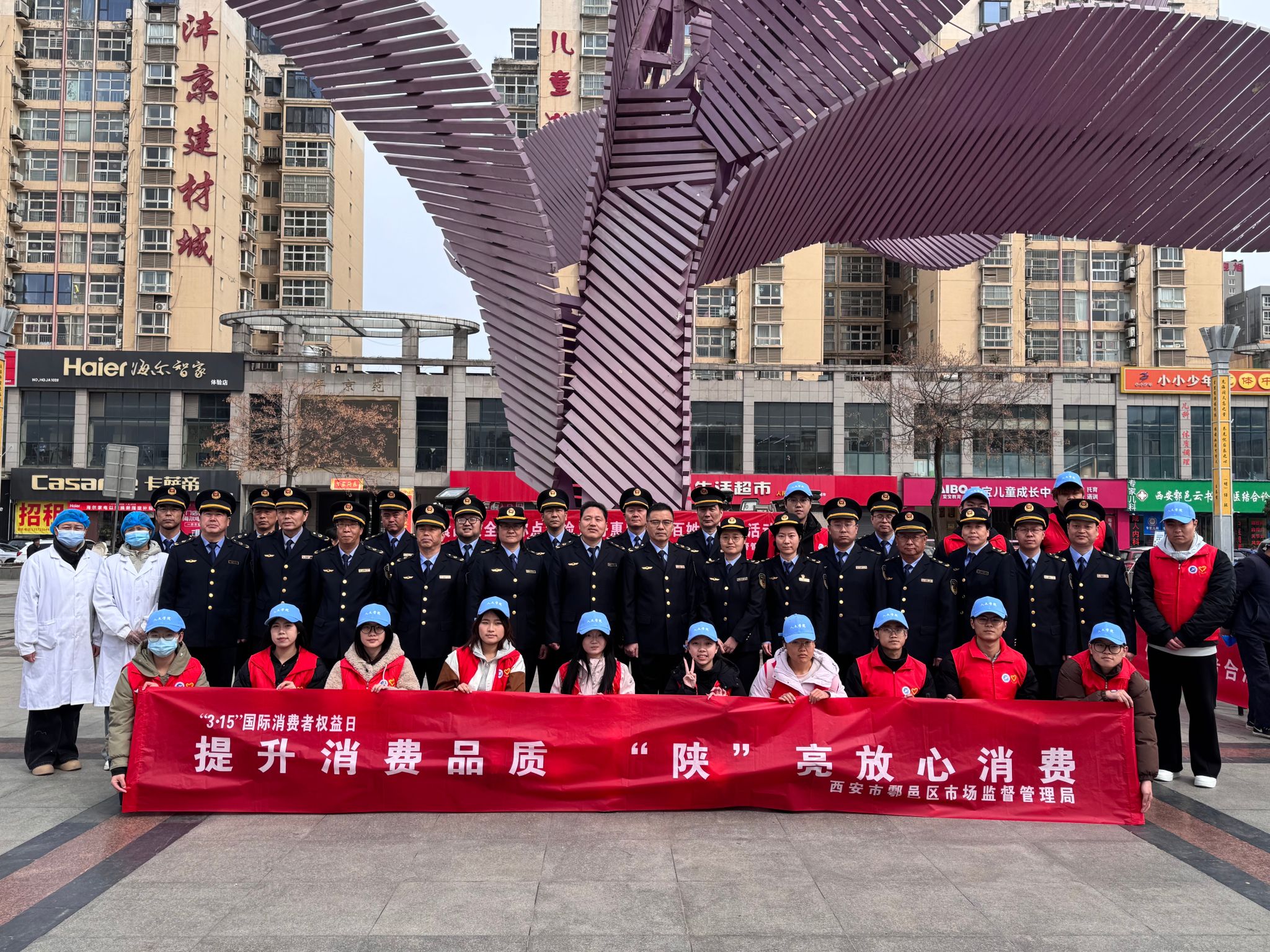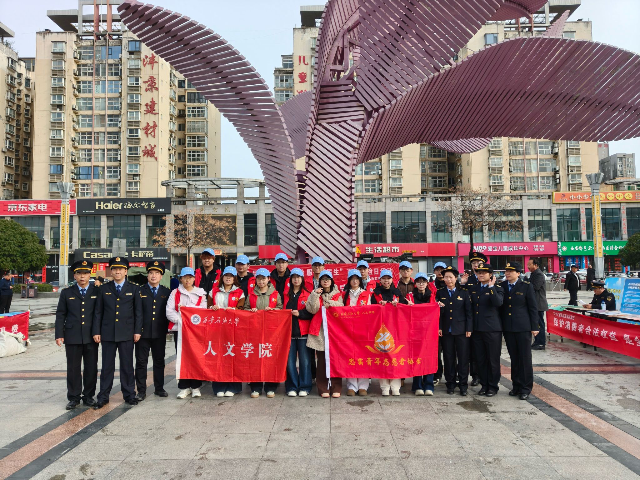 团委联合“忠实”学生党建工作室组织学生志愿者前往鄠邑区人民广场,参与鄠邑区市场监督管理局“315”消费者权益日主题宣传活动,以实际行动传递维权理念,助力营造安全、放心的消费环境。