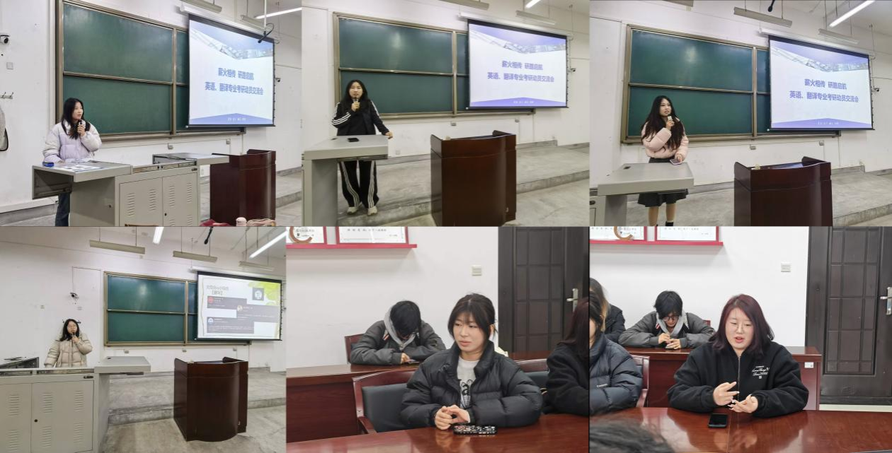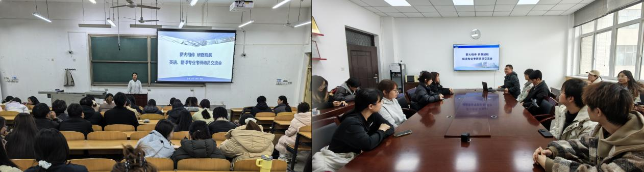 精准对接不同专业学生需求,分场次举办“薪火相传,研路启航”考研动员交流会。其中,英语、翻译专业专场在B114教室举行,俄语专业专场在崇文楼314会议室同步开展,年级辅导员及各专业备考学生参加了本次活动。