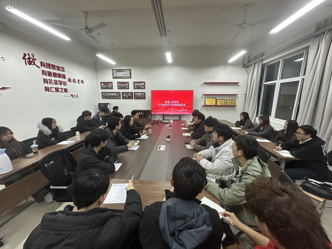 党委书记贾莉娜、2025级辅导员应洪浩与来自储运、土木、安全专业的11个班级共计23名学生代表座谈。