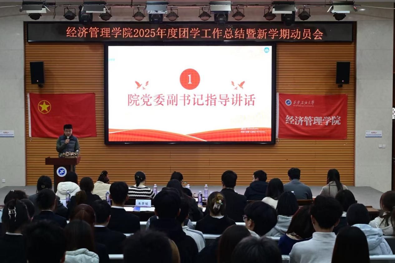 团学组织立足经管学科特色,在思想引领、学风建设、校园文化、实践创新等方面取得的亮眼成绩。并对新学期团学工作提出三点希望:一要强化思想引领,筑牢信仰之基;二要聚焦中心工作,服务成长成才;三要锤炼过硬作风,勇于担当作为。