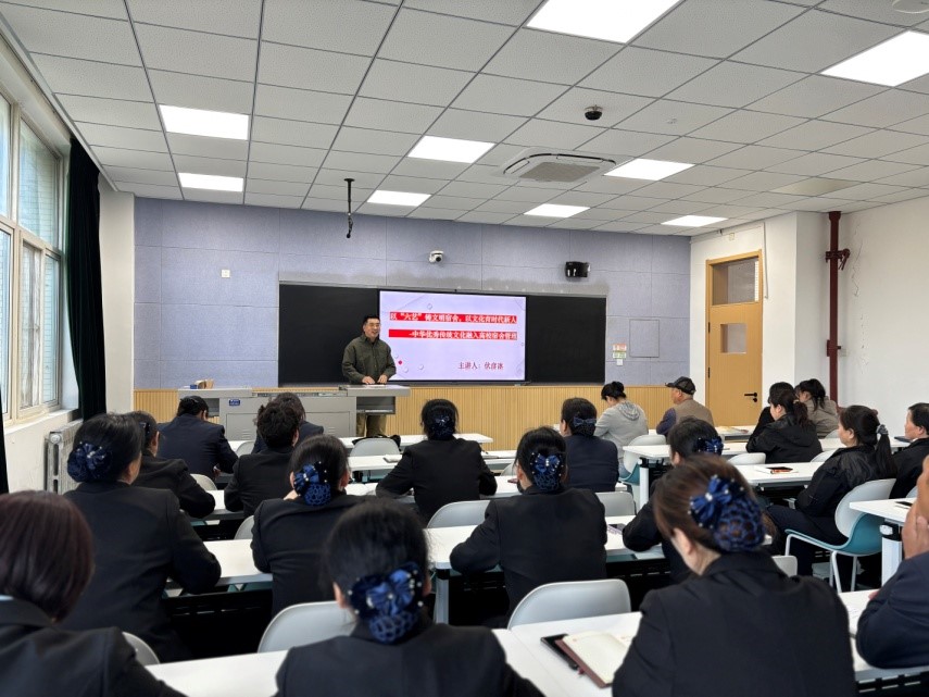 伏彦冰老师,开展《以“六艺”铸文明宿舍,以文化育时代新人--中华优秀传统文化融入高校宿舍管理》专题讲座,公寓管理中心全体工作人员参加学习。