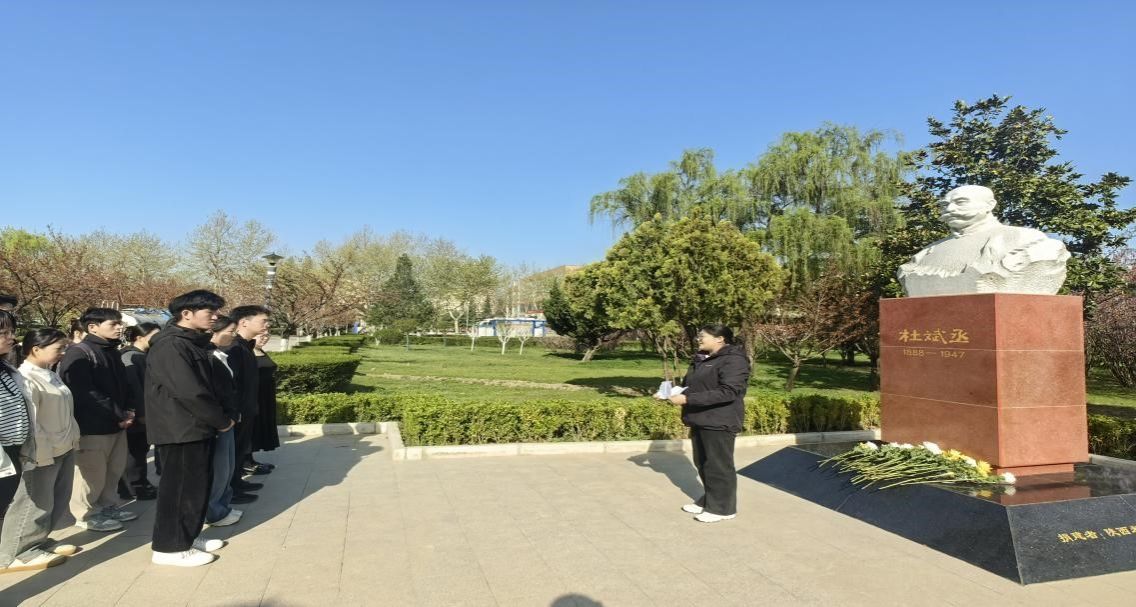 仪式伊始,全体人员整齐列队,依次向杜斌丞雕像敬献鲜花、肃立默哀。一束束鲜花承载着对革命先辈的追思与敬意,彰显青年学子对英烈精神的尊崇与传承。