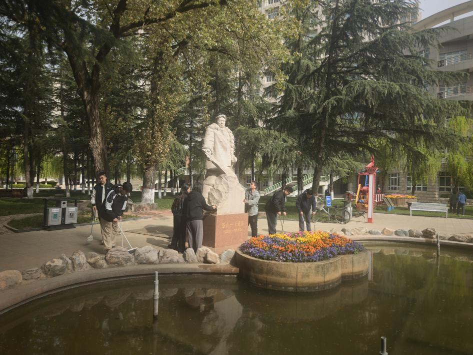 研究生代表手持工具,认真擦拭铁人雕像、细致清扫广场环境,以朴实行动缅怀先辈、寄托哀思,让铁人雕像在阳光下更显庄严,让铁人精神在实践中得以传承。随后,全体师生依次献上鲜花,深切缅怀王进喜先生为国家石油事业作出的卓越贡献,致敬老一辈石油人艰苦奋斗、无私奉献的崇高品格。