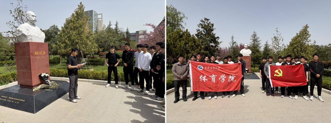 杜斌丞烈士纪念雕塑前,举行庄重的缅怀献花仪式。同学们整齐列队、神情肃穆,向为民族解放、民主革命事业英勇献身的杜斌丞烈士默哀,表达对革命先烈的深切哀思与崇高敬意。默哀结束后,学生党员代表缓步上前,向烈士雕塑敬献鲜花,以朴素庄重的形式,缅怀先烈功绩,传承红色基因。