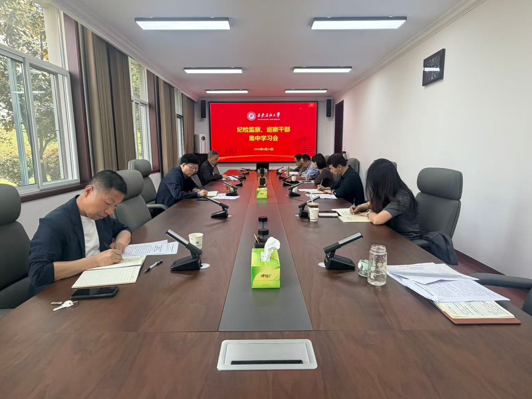 4月14日下午,纪检巡察干部2026年第5次集中学习会在鄠邑校区办公楼第五会议室召开。校党委副书记、纪委书记、监察专员王辉强主持学习会。纪检监察机构、党委巡察工作办公室全体干部参加会议。