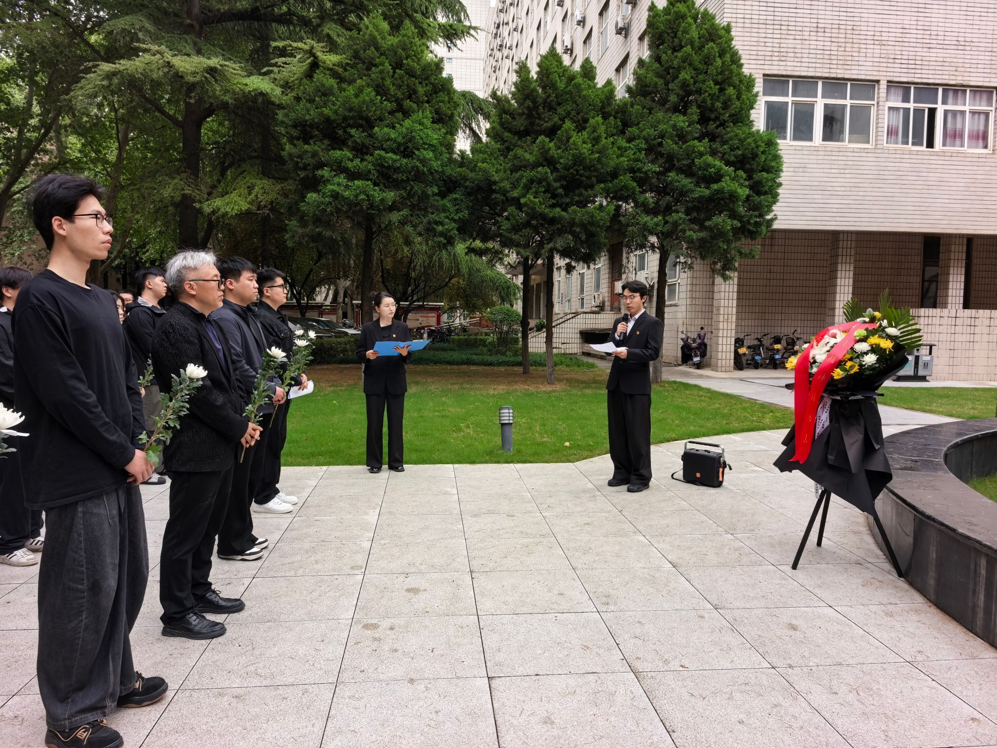 缅怀仪式环节,全体师生怀着无比崇敬的心情,瞻仰唐春雨烈士塑像,全场肃立,默哀一分钟,以此寄托对烈士的深切缅怀与崇高敬意,感受英烈生前坚毅果敢的精神风貌。默哀结束后,全体师生依次向唐春雨烈士塑像敬献鲜花,并行三鞠躬礼,用最朴素的方式表达对英烈的缅怀与敬仰,告慰烈士忠魂。