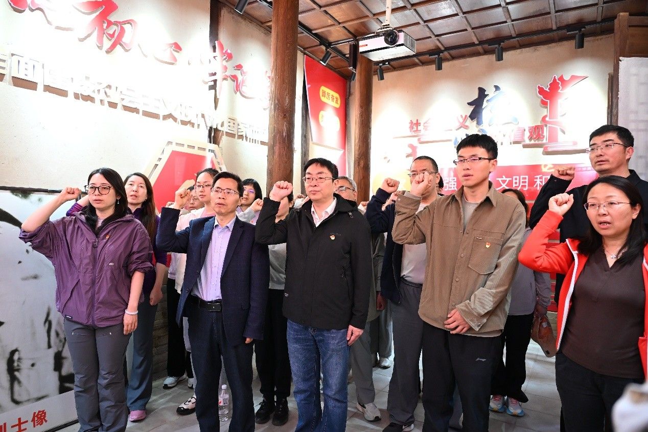 党委书记潘娜领誓,面对鲜红党旗,党员们高举右拳,庄严宣誓,表达了赓续红色血脉、坚守初心使命的坚定信念。