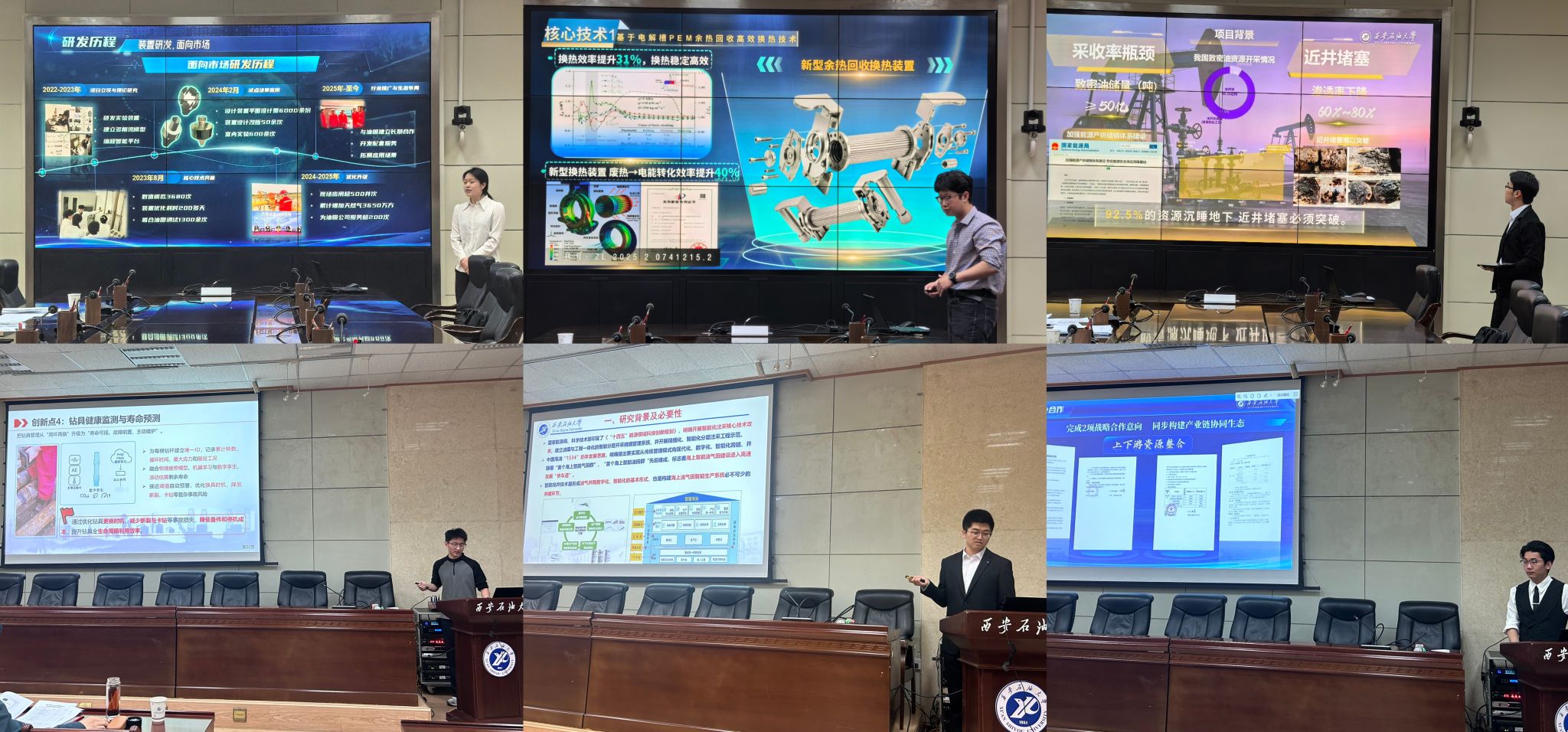 比赛现场气氛热烈,各参赛团队紧扣国家能源战略需求与行业前沿技术,围绕“智慧油气田开发”、“绿色低碳能源转型”、“高端油气装备国产化”等关键领域,通过PPT路演、视频演示等多种形式,全方位展示了项目的创新性、商业价值及社会意义。
