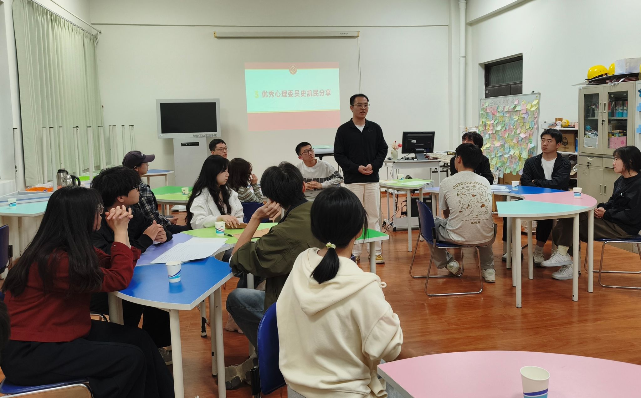 优秀班级心理委员代表、能科2301班史凯民同学结合自身经历,从班委联动、班级氛围营造和个人成长等方面做了经验分享,为在场心理委员提供了可借鉴的实战范本。