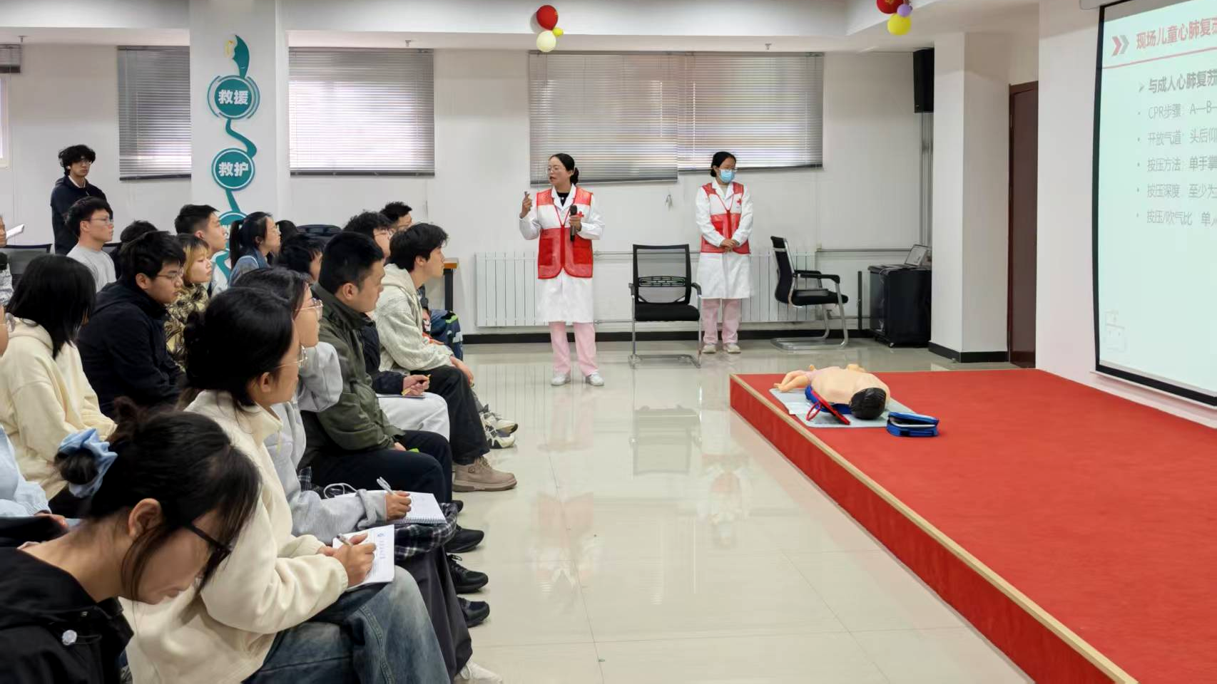 ,为进一步普及应急救护知识,强化校园安全应急保障能力,提升师生突发状况自救互救与应急处置能力,筑牢师生生命健康安全防线,4月21日下午,校医院联合校工会、西安市鄠邑区红十字会,圆满举办第七期师生应急救护培训,共计55名师生参训。