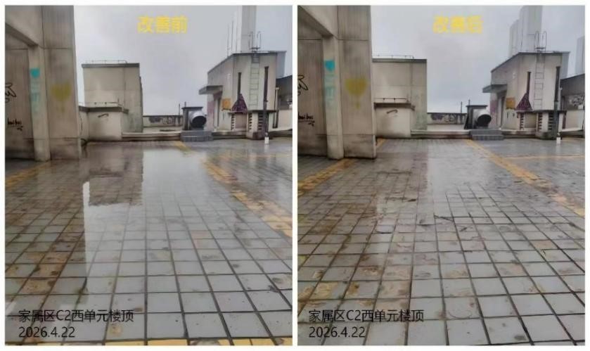 6.鄠邑校区家属区C2西单元楼顶积水处理;
