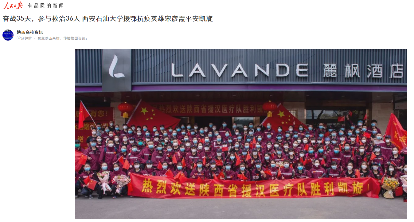校医院护士宋彦霞作为陕西第四批援助湖北医疗队队员,平安返回西安。该校党委副书记张木、副校长苏文甫及相关部门负责人赴临潼铁道部疗养院迎接宋彦霞。