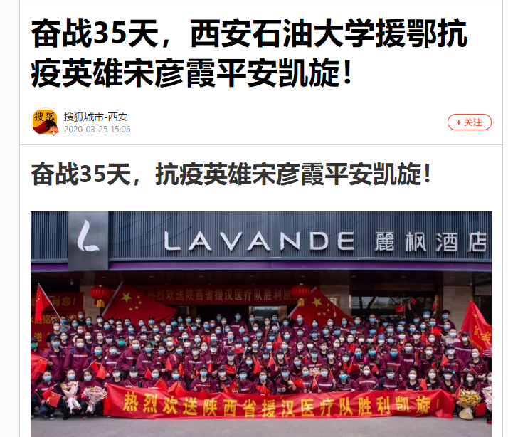 在武汉奋战35天,其中29天坚守在重症红区,宋彦霞为打赢武汉疫情防控阻击战贡献了西石大的力量。在这个繁花似锦的三月里,她没有来得及好好看一看武汉,欣赏一下武汉的樱花,上完最后一个夜班,她就听从指挥从武汉撤离返回西安。