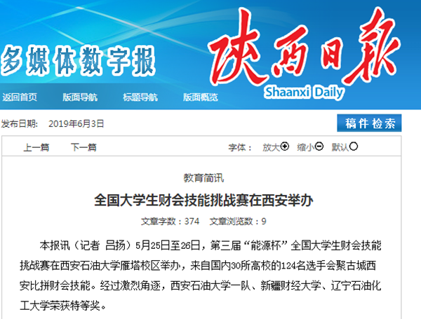 本届挑战赛是由中国商业会计学会、中国石油企业协会联合主办。大赛分为会计信息化操作、案例分析和擂台赛三个环节,本着“以赛促教、以赛促学、以赛促改、以赛促管”的指导方针,旨在全面系统地检验和促进财会专业理论知识和实践技能的深度结合,提升大学生财会素养,激发大学生财会能力,提升大学生团队协作意识,探索塑造应用型财会人才的新思路和新方法。