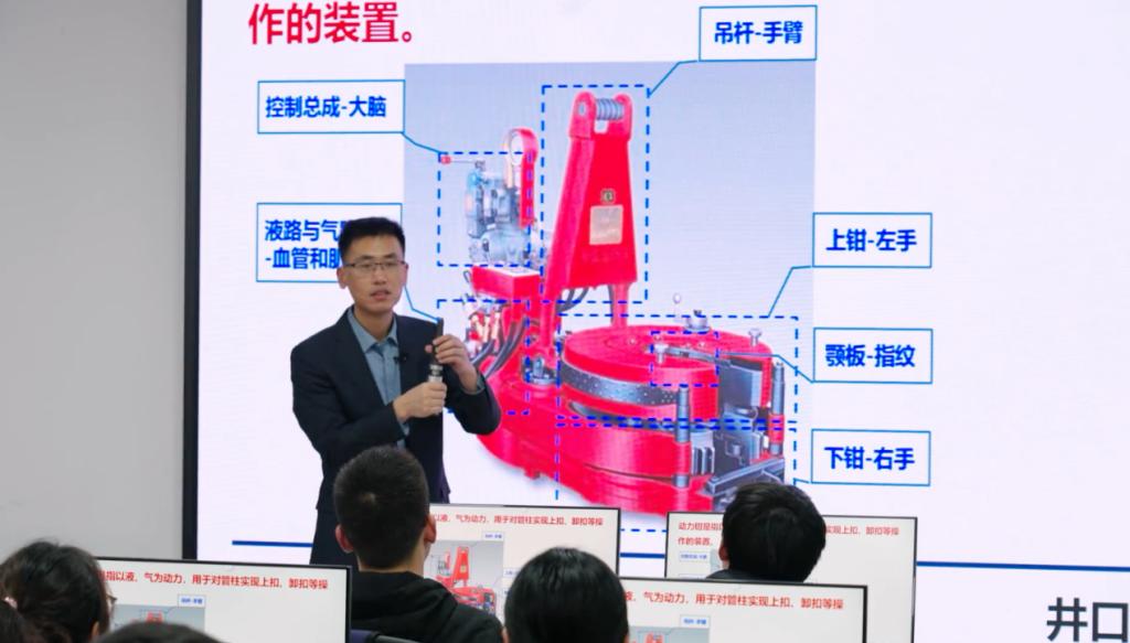 在课程思政教学实践中,李万钟老师对“立德树人”和“课程思政”的教学理念有深刻的认识和积极的态度,深度重视“课程思政”的价值和作用,将“课程思政”元素穿插在教学过程中。比如在讲解《石油钻采机械》课程时,李老师通过讲解全自动一键式钻机系统、钻井机器人技术、智慧油田开采技术等,引入“在改革创新和科技发展的过程中我国已成为全球少数可自主研制自动化钻机的国家之一”这一信息,激发学生的爱国主义热情和民族自豪感。