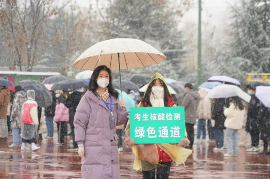 退伍大学生一起,立下了请战书,投入到了核酸检测的一线工作之中,为同学们指引排队位置,协助医护人员进行“一码通”查验。每一次的全员核酸检测都有着他们的辛勤付出,在天刚蒙蒙亮的清晨,他们就必须动身前往操场,为马上要进行的核酸检测进行准备工作:搭桌子、摆设备、调试工具……在温度为零度以下的操场上,王梓馨和其他战友不畏严寒,身着防护服与医护人员一起,化身守护我们的“大白”。特别是在2022年全国硕士研究生招生考试中,王梓馨同学也是毅然加入到志愿服务第一线,冒着大雪引导考研同学和考务人员进行核酸检测,为考研学子保驾护航。
