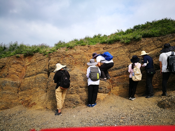 大二暑期开展的是综合实习,地点在安徽巢湖的实习基地。“大二结束后,学生的专业课学习增多,有了更丰富的知识储备,这个阶段的实习,对同学们的野外工作方法和技能提出了更高要求。”丁超老师说,“巢湖观测点的岩石和剖面中含有丰富的化石,每年都有同学在观测过程中找到化石,这也是他们实习的‘彩蛋’。”这次实习主要围绕实测剖面进行,且需要学生在实习结束后完成地质填图报告。经过一段时间的锻炼,同学们使用测量工具的熟练度、岩石分类的熟悉度、构造现象的辨别分析能力都得到了提升,切身体会到野外地质工作不能走马观花,需要细致记录、精准测量、大胆想象。同学们切身感受到了老师常挂在嘴边的那句话:“看山不是山,看水不是水”。在他们眼中,山水不再仅仅是可观可赏的风景,山如何形成,跨越几个地层?水从哪里来,如何形成今日形态?动静皆有因果。