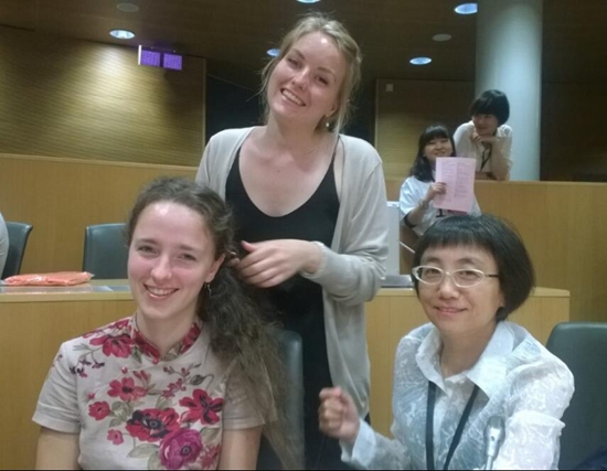 (法语教师吕芳在担任海外汉语教师期间与学生合影)