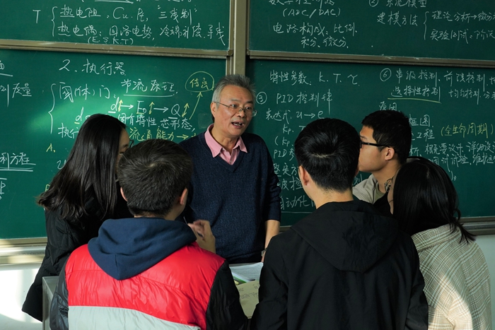 规定的教学工作量。作为专业负责人,不论日常科研和教学任务多么忙碌,汪老师始终以身作则,坚持高标准完成各项工作。他经常是白天在鄠邑校区上完课以后,晚上加班加点赶回雁塔校区继续工作,不论是写材料、看文献、做实验,还是继续给研究生上课,吃一个肉夹馍、喝两口水继续投入“战斗”已经成为他的工作常态。担心学生理解不好课程内容,汪老师上课从来不照着PPT上课,而是把重点内容和疑难问题工工整整用粉笔写在黑板上,类似工业仪表等内部构造复杂难懂的重要知识点,汪老师更是在黑板上一边一笔笔亲自画图一边给学生耐心讲解。每次课间,他总会不厌其烦帮助学生解疑答惑,鼓励学生刻苦钻研、扬长避短。在学生实验、测试和研究不断失败或者遇到瓶颈问题一筹莫展时,他总会专门给学生“开个小灶”,帮助学生分析症结。