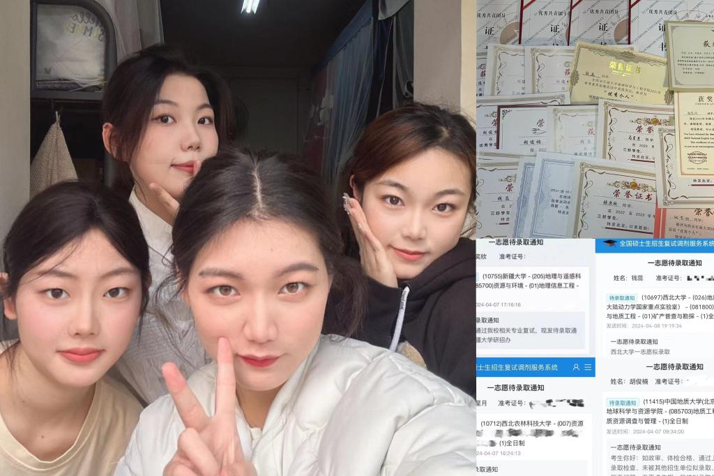 录取。除学习外,他们四人全面发展,综合素质较强,在各类学生活动及专业比赛中屡获佳绩,累计获得大学生社会实践、挑战杯、互联网+、地质技能大赛等各类奖项近百余次。