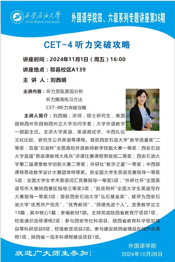 报告地点:鄠邑校区弘石报告厅