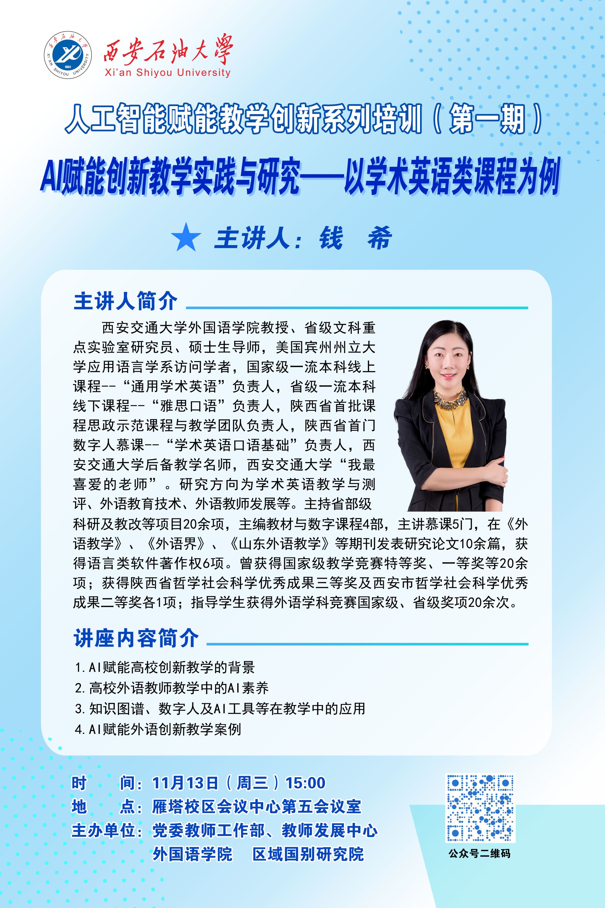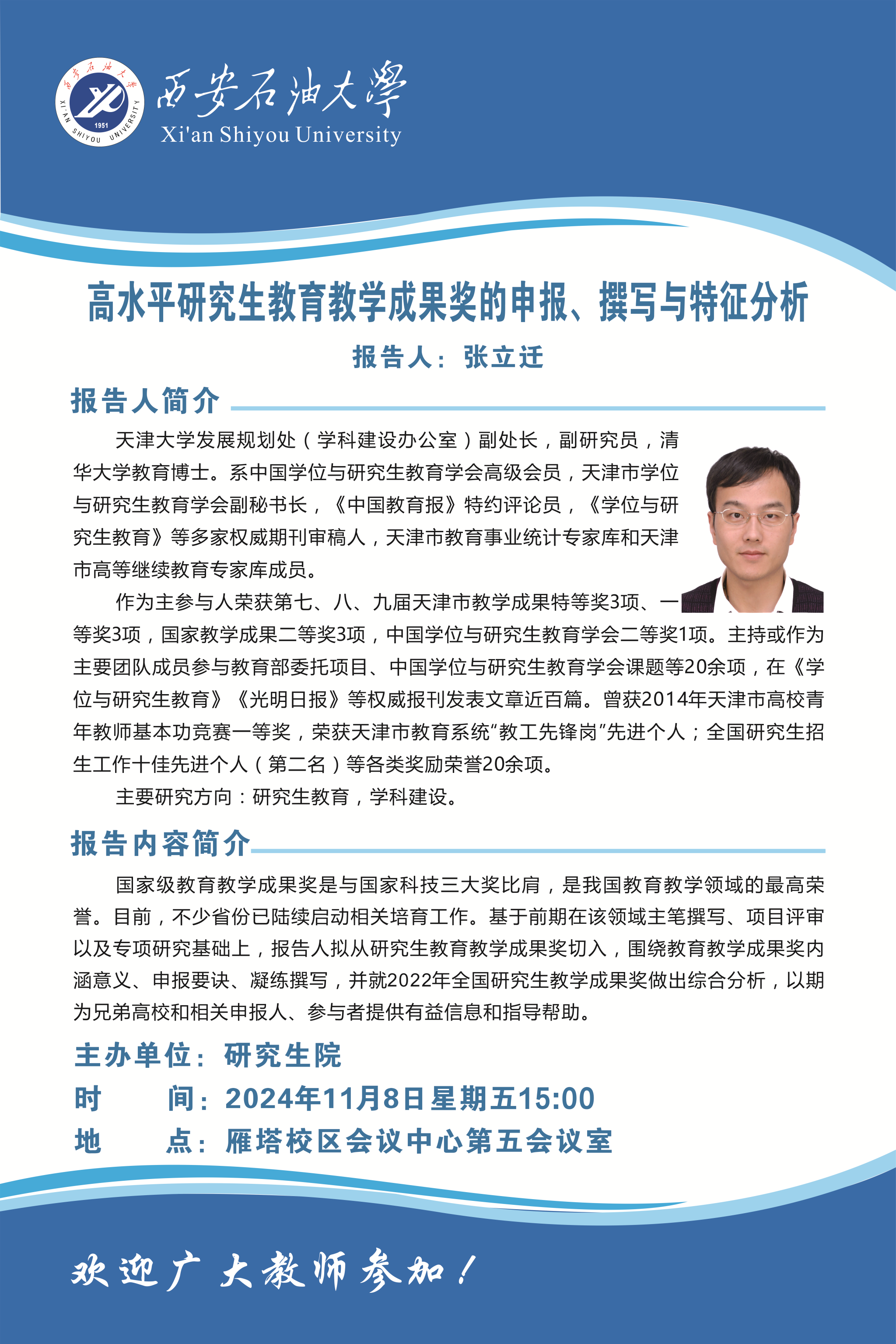 报告地点:鄠邑校区弘石学术报告厅 鄠邑校区弘石学术报告厅