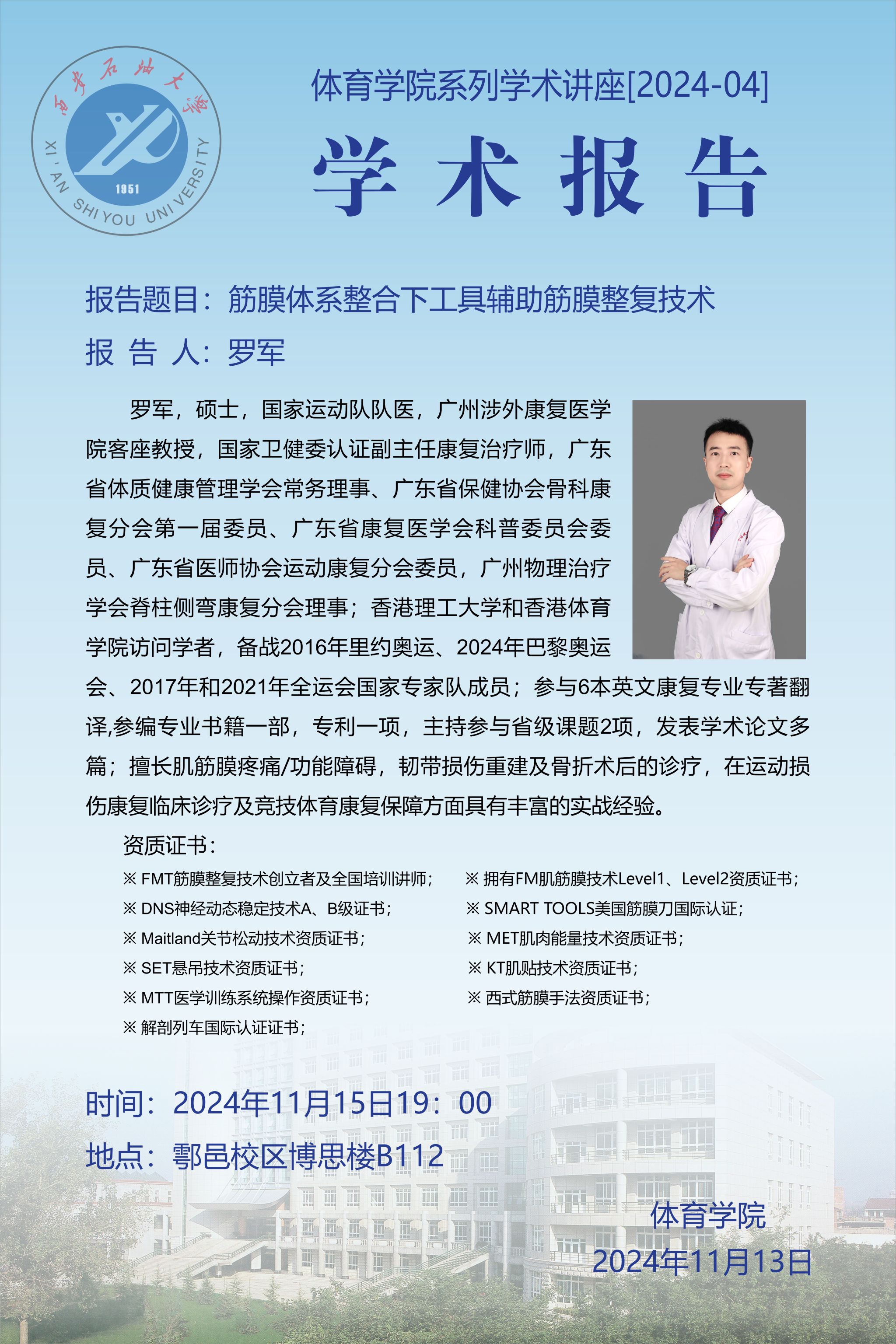 报告地点:雁塔校区会议中心第二会议室