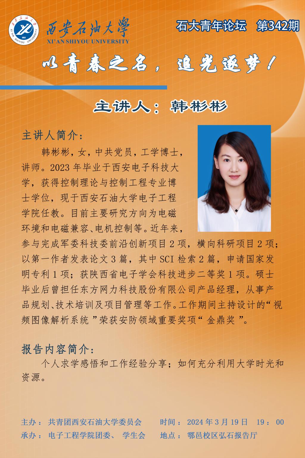 报告地点:鄠邑校区弘石报告厅
